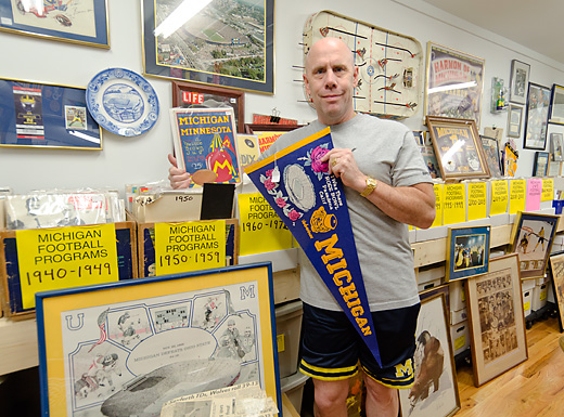 The Ann Arbor Magic Shop and the Ann Arbor Sports Memorabilia Shop share a space, owner and general air of whimsy and wonder. Tucked below Liberty Street, every inch of the store is so full of trinkets and tricks it’s easy to see how visitors can get lost there for hours.