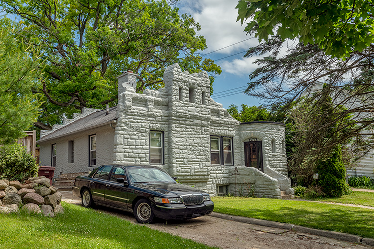 When I asked friends to suggest their favorite Ann Arbor houses on social media, this is one of the houses that was mentioned again and again. Constructed with what appears to be fieldstone and painted white, the pint-sized castle features four merlons at the center of its facade. The house sticks out among its far more conventional-looking neighbors. When looking at it, you can’t help but wonder why and how it was designed in this rough-hewn regal style, and why its original tenant wished to literally make their home their castle.