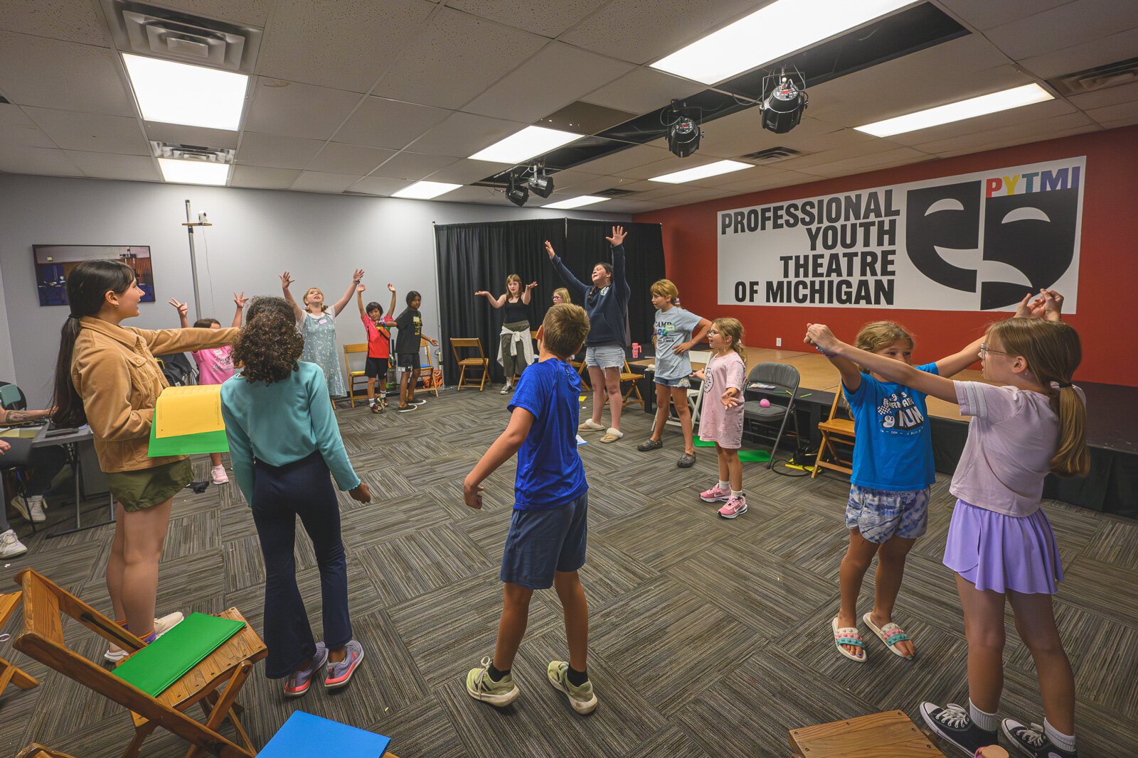 Wright started her youth theatre during the first wave of the COVID-19 pandemic in 2020, offering summer camp programming in a local park, but with no brick-and-mortar space. In 2021, she moved PYTMI to Ann Arbor and was glad to have a more permanent home, but her clientele was a bit much for the mix of massage therapists and other, quieter tenants in the building.