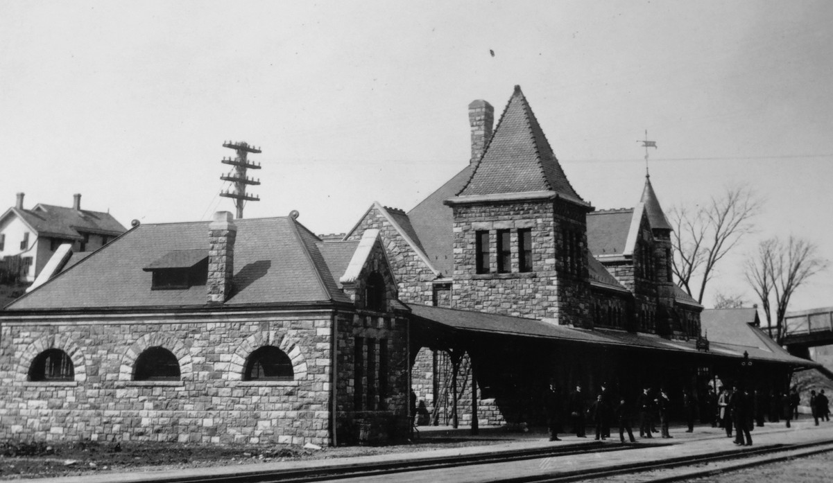 In 1886, architect Frederick Spiers collaborated with William C. Rohn to build the beautiful structure at 401 Depot Street. The style the men used was called “Richardsonian Romanesque,” which has been described as an incorporation of 11th and 12th century French design. The elegant depot used stones that were mined at Four Mile Lake, and was called “the finest station…between Buffalo and Chicago.” Pictures and written descriptions from the era confirm this compliment. Inside the depot, travelers walked on French tile floors. They looked up at stained glass windows and red oak ceilings. Outside, people enjoyed flower gardens and a fountain.