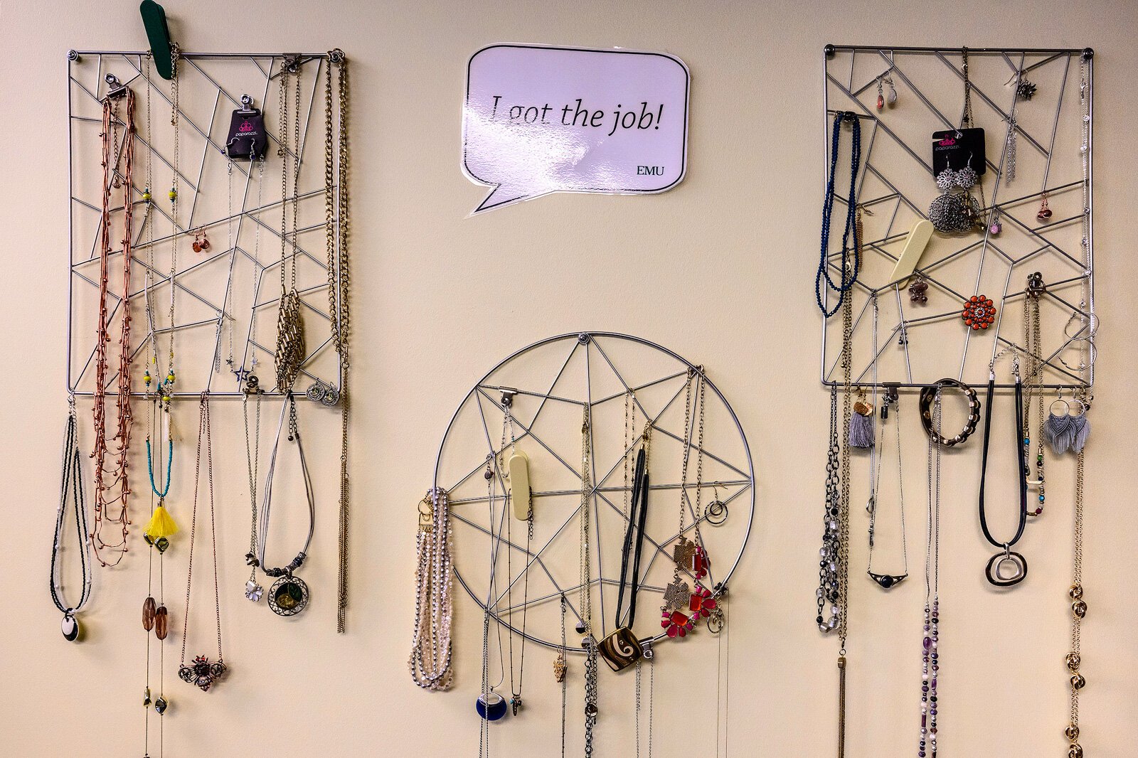 “I can remember being nervous about the upcoming career fair and not having the financial means or reliable transportation to go to the store and buy an outfit,” she says. “Professional clothing can be a huge financial barrier for students, and we are happy to break down that barrier here at EMU.”