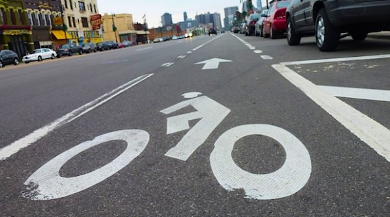 In Michigan, some budget-wary city planners have been taking first steps toward making streets “complete” by putting streets on “road diets.” With a road diet, a town takes a four-lane road, removes a lane, then adds a turn lane. In the remaining lane space, planners have the space needed for bike lanes on both sides of the road.