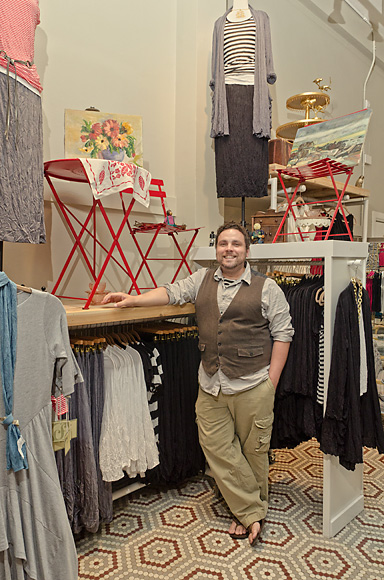 Vaughn says he and Chapman really wanted their store to be a mini-department store. To that end, they’ll be adding shoes, make-up, outerwear and more accessories starting in the fall. They picked the Arcade not only for its historic and beautiful ambiance but because of the other fashion stores nearby.
