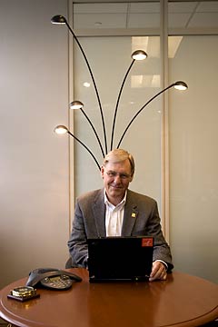 “I expect a time when people don’t have to go to a clinic,” he says. “They’ll just go into their family room or office or bedroom, sit down in front of their personal computer with a camera, plug into a USB port with a package of stuff to get blood pressure readings and have a conversation with the doc.”