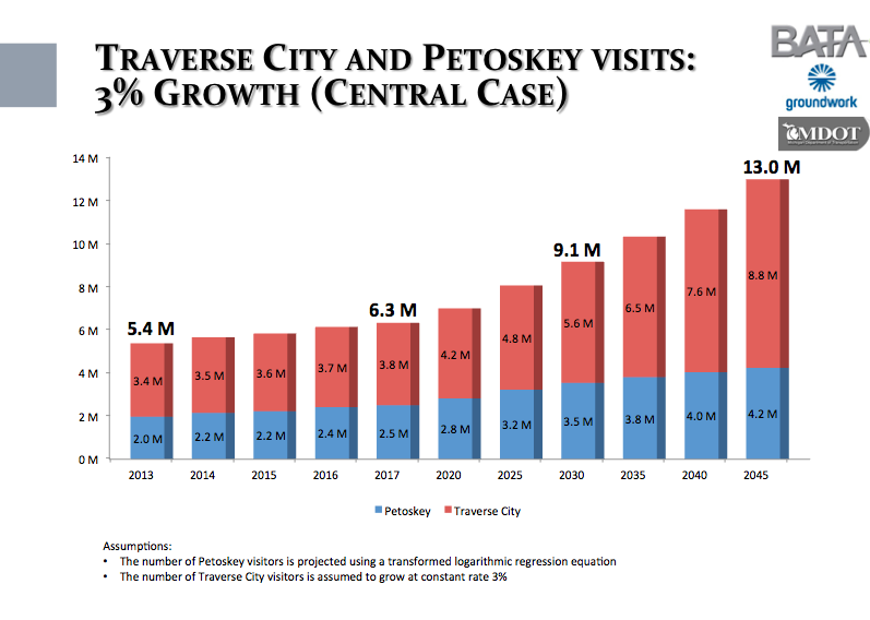 Early findings about how many people would likely use the passenger rail service are encouraging, particularly the fact that visits to the Traverse City region have been growing 4 percent per year.