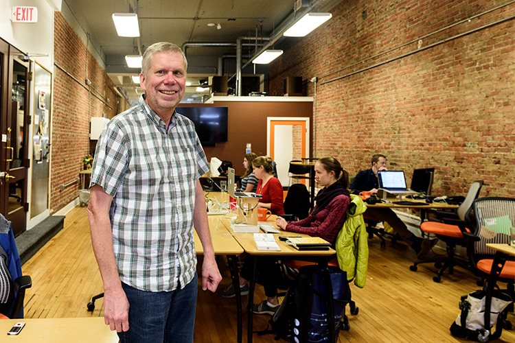 By contrast, Workantile has found its niche over the past four years by embracing a model quite different from Tech Brewery’s startup-focused, incubator-inspired style. In the early years, Nelson says, “Workantile didn’t know what it was for.” The high-ceilinged Main Street building offers ample desk space and a few small, enclosed rooms for meetings or conference calls, but it didn’t really have office space to offer startups.
