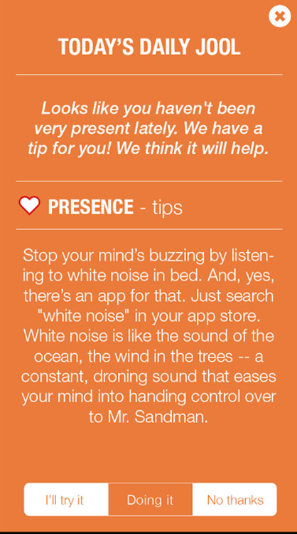 Currently, JOOL is licensed to employers, health plans, and other care providers, but the company will consider making it available for individuals in 2017. For now, employers are using it to help improve health and resiliency and reduce defensiveness among employees, McCormick says. The app is used by more than 3,000 individuals, with more signing on each month.