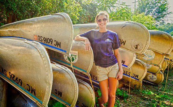 Arielle Clinthorne with the canoes at the Argo Canoe Livery