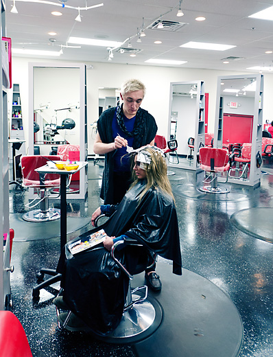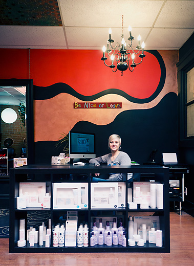 The majority of Brown and Deline’s clientele lives in a 15-mile radius of the salon — mostly upper middle class women as well as working professionals. Cuts range from $26 to $55. The diverse age range of the staff creates an equally diverse range of clientele with each stylist attracting a particular demographic. Some clients live right downtown while others travel from as far away as Chicago to get their hair done.