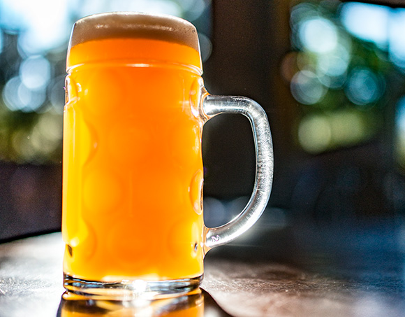 Brian McShane, bar manager at the Arbor Brewing Company Microbrewery (fka the Corner), has several summertime beers in his refrigerator: Arbor’s own Bavarian Bliss, Honey Lavender from Black Rocks, and Clementine Lemon Thyme from Liberty Street.