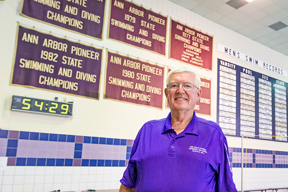 Denny Hill cofounded Club Wolverine and is now retired from a 46-year career coaching Pioneer High School’s swimming team, during which time the school clinched 31 state championships. He says Ann Arbor has been “a sports-oriented town” with an equal-opportunity mindset towards all varieties of athletics for far longer than the “Top Swim Cities” report has been around.