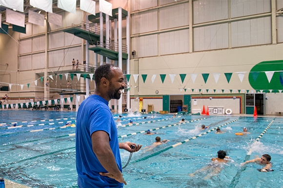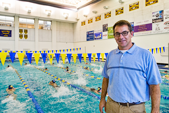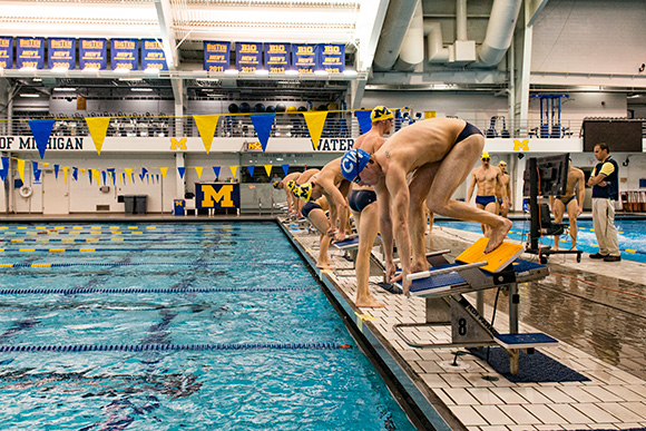 U-M head swim coach Mike Bottom says he was aware of Ann Arbor’s record in athletics overall when he came here in 2008, but he’s been surprised at how strong swimming is throughout the community. From the Ann Arbor YMCA to high school pools and public pools, Bottom asserts that there’s “more access to water” here than in many communities in California, where he spent 10 years coaching the University of California’s swim team. (San Jose-Santa Clara and San Francisco-Oakland rank as the No. 2 and No. 3 swimming cities in the new report, below Ann Arbor.)
