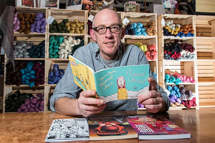 “[We] went back to our own comics, our jobs, our families and never really got it going,” says Sickman-Garner, a former Zingerman’s employee who just launched the new yarn shop Spun with his wife in Kerrytown. “I really think comics is such a laborious and solitary craft that it maybe makes sense that a lot of comics artists just want to go to the studio, put on headphones, and scratch ink on paper. Or, maybe I’m just antisocial!”