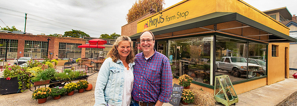 “You can see all of downtown when you’re sitting there,” says Bill Brinkerhoff, co-owner of Argus Farm Stop.
