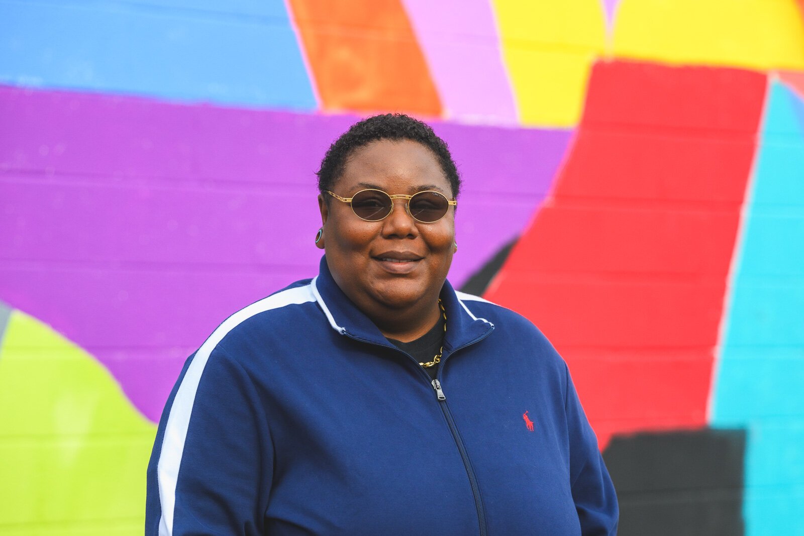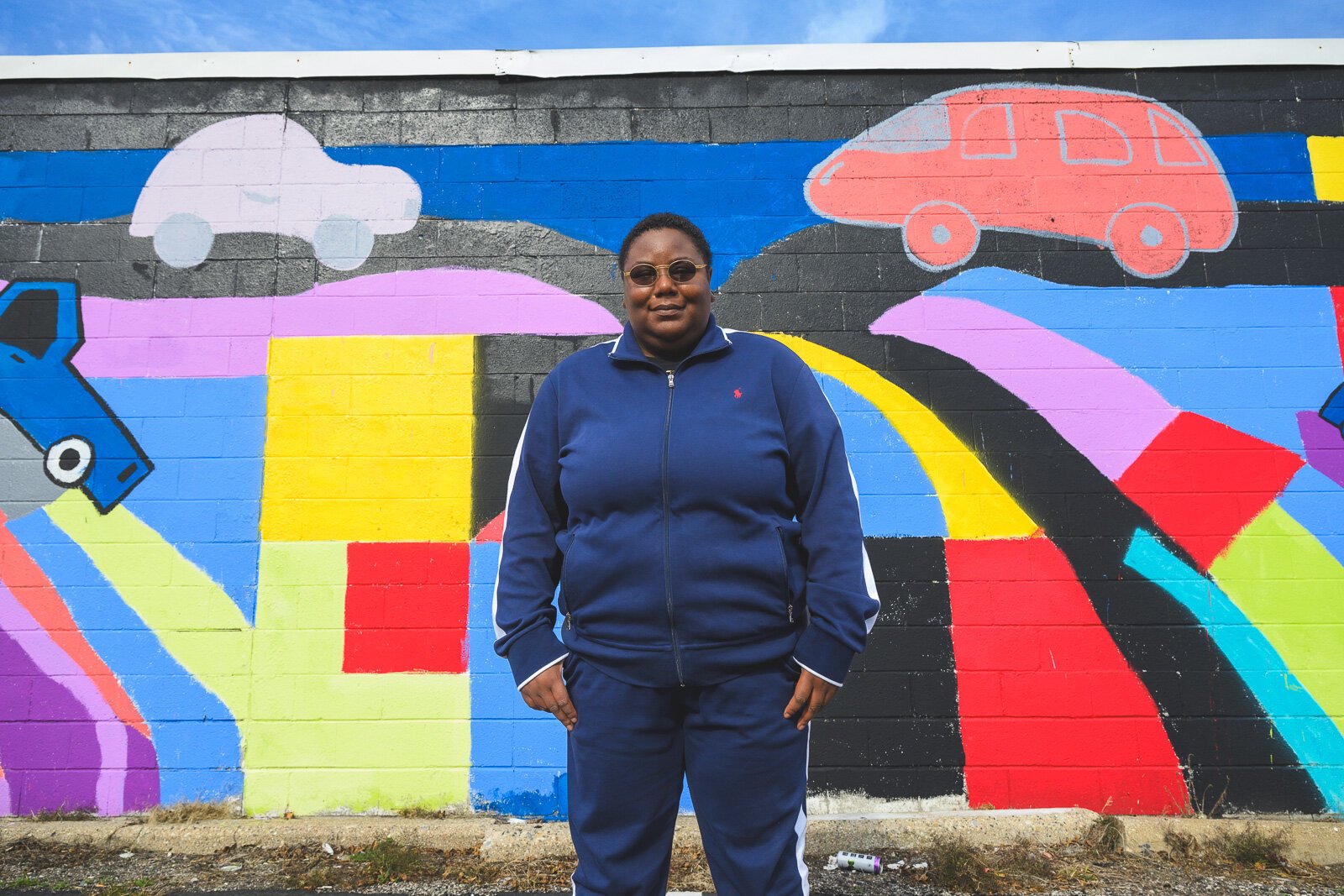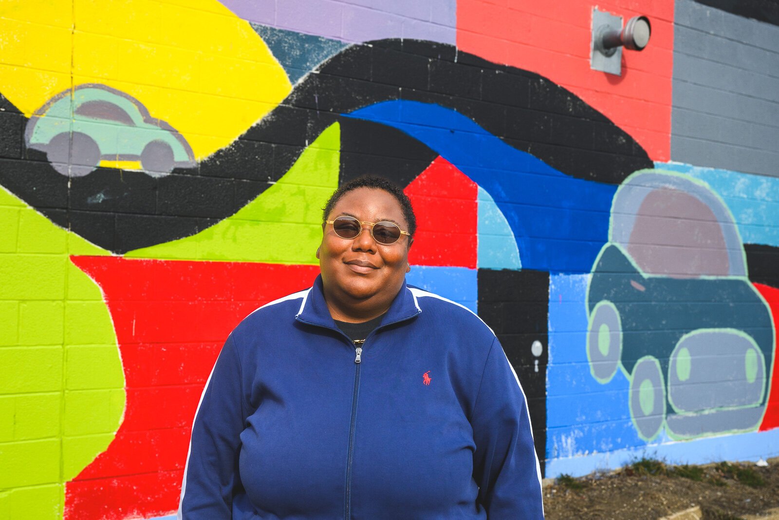 Youth Art Gallery Executive Director T’Onna Clemons in front of the Youth Art Gallery mural at Community Auto Wash.