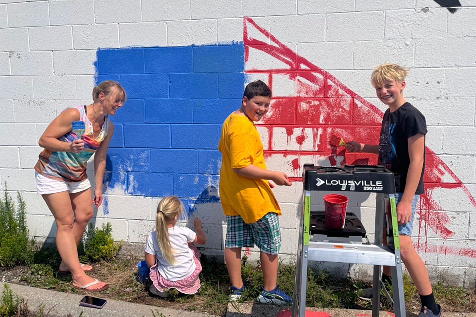 Clemons started bringing large canvases and inviting kids to paint along with her. Painting outside proved to be especially effective with young people, Clemons says, “because they’re just interested in seeing what you’re doing.”