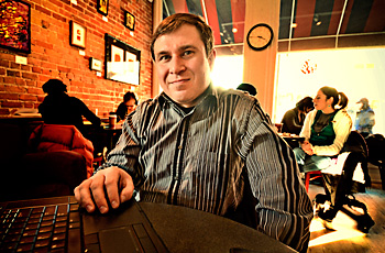 Ted Belding getting some work done at Sweetwaters in downtown Ann Arbor