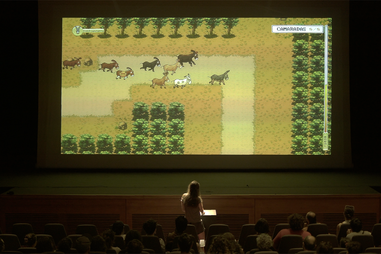 On Feb. 15 and 16 at 1:00 p.m., the University Musical Society will present the first U.S. performances – or playthroughs, depending on your perspective – of asses.masses at the Stamps Auditorium, 1226 Murfin Ave. in Ann Arbor. The video game/theater performance, which relies on audience participation, is expected to last approximately seven and a half hours. Meals will be provided along with a series of intermissions.