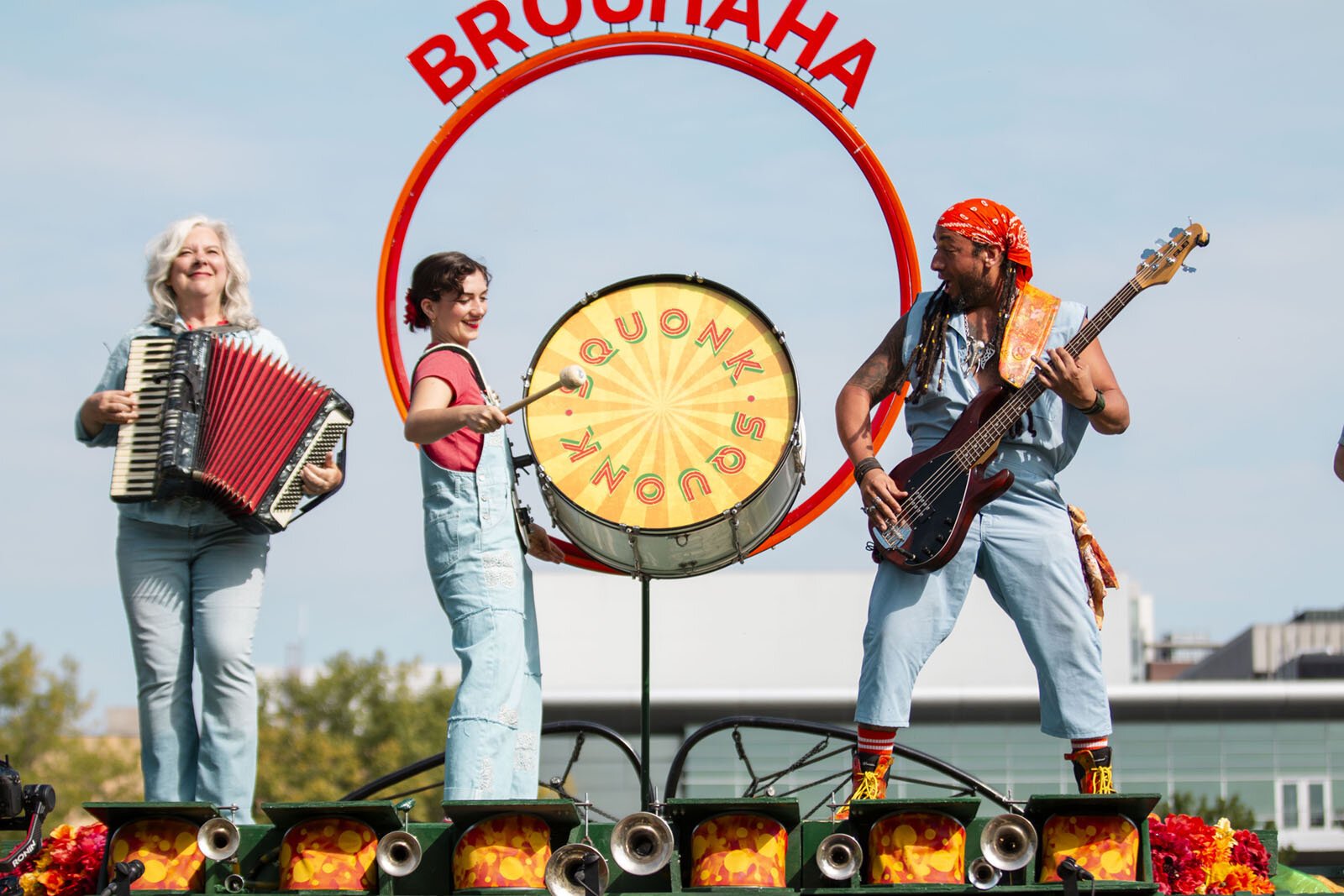 People play the Squonkcordion at a performance of “Brouhaha.”