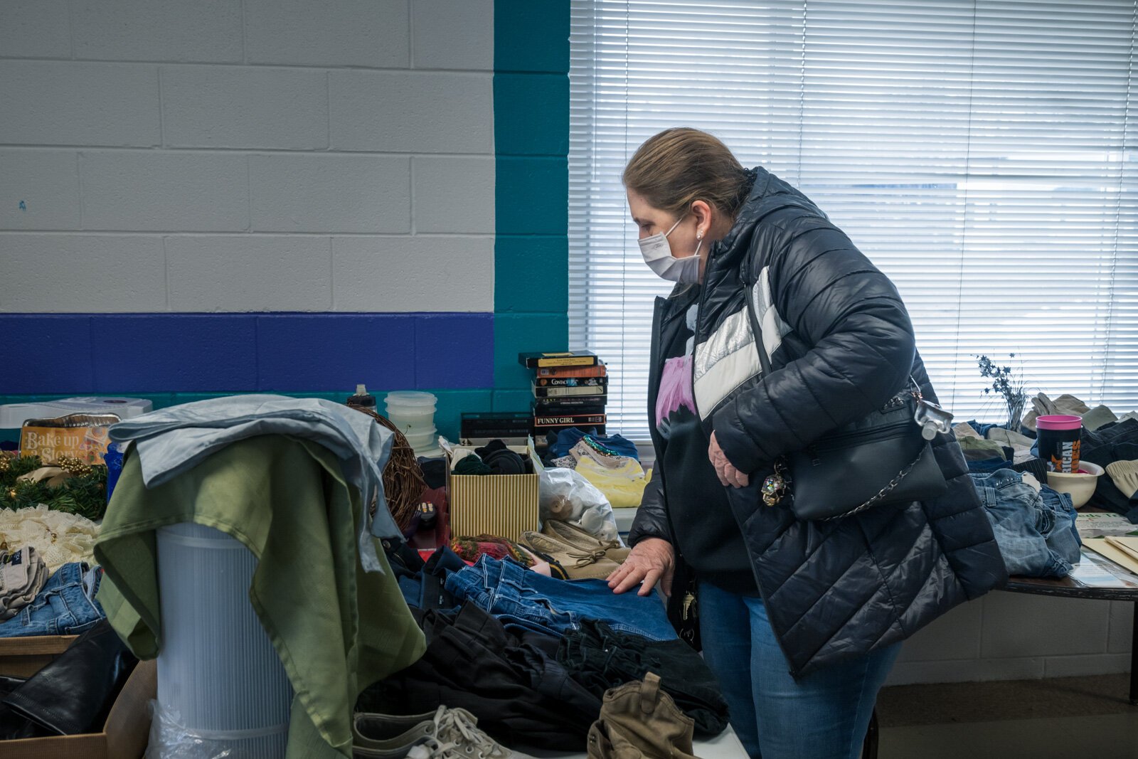 Half an hour after opening, nearly a dozen shoppers circled the free store with garbage bags or boxes in hand, sifting through carefully arranged displays of clothing, shoes, handbags, kitchenware, books, and more. Draw’s husband Zawadi, a minister, prayed for a “supernaturally blessed” day for all visitors at the shop’s opening, and was available to meet with shoppers in the church’s sanctuary if they wanted prayer. As shoppers left, they were offered a small bag containing KN95 face masks and at-home COVID-19 testing kits.