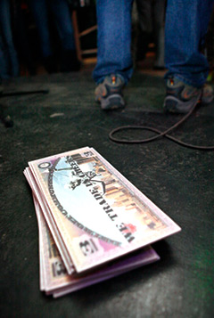 A. Simply use it as you would any ol’ three dollar bill! Cheers is printed in denominations of 3. If your pizza tab comes to $8, you can pay it with a U.S. fiver and a Cheers. Or three Cheers and get a dollar back. Or, you can pay for a $2 beer with a Cheers. and you’ll get a buck back in change. Or you can use a U.S. $5 bill, and then ask for one Cheers back.