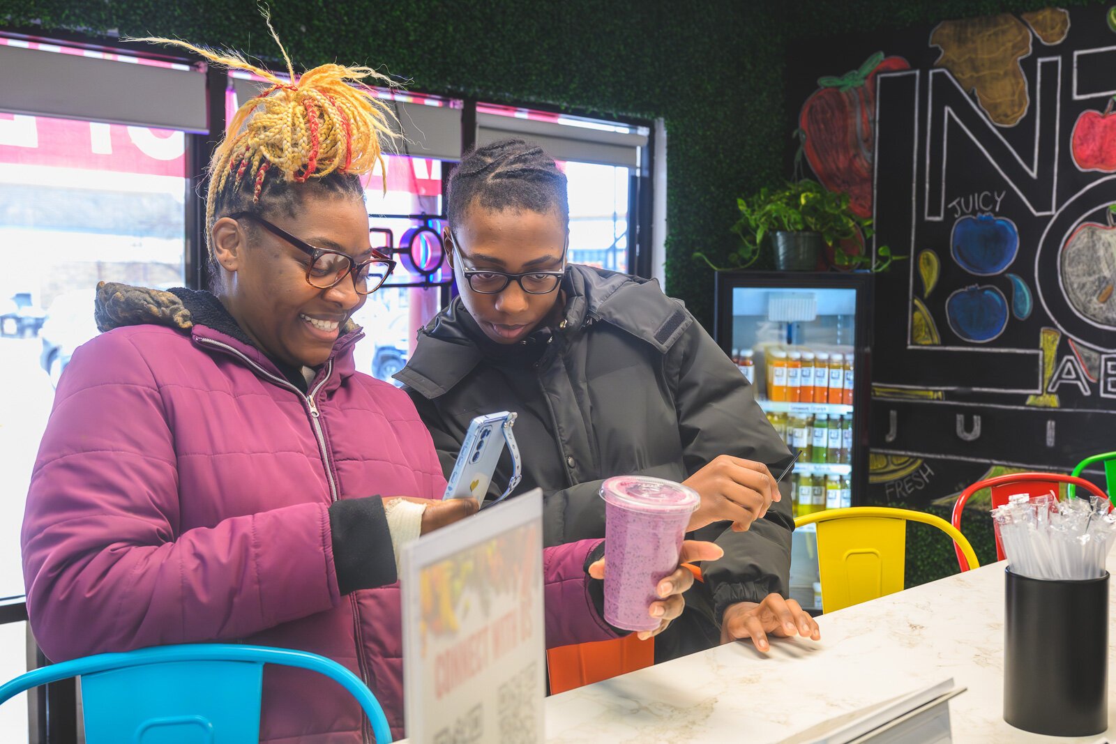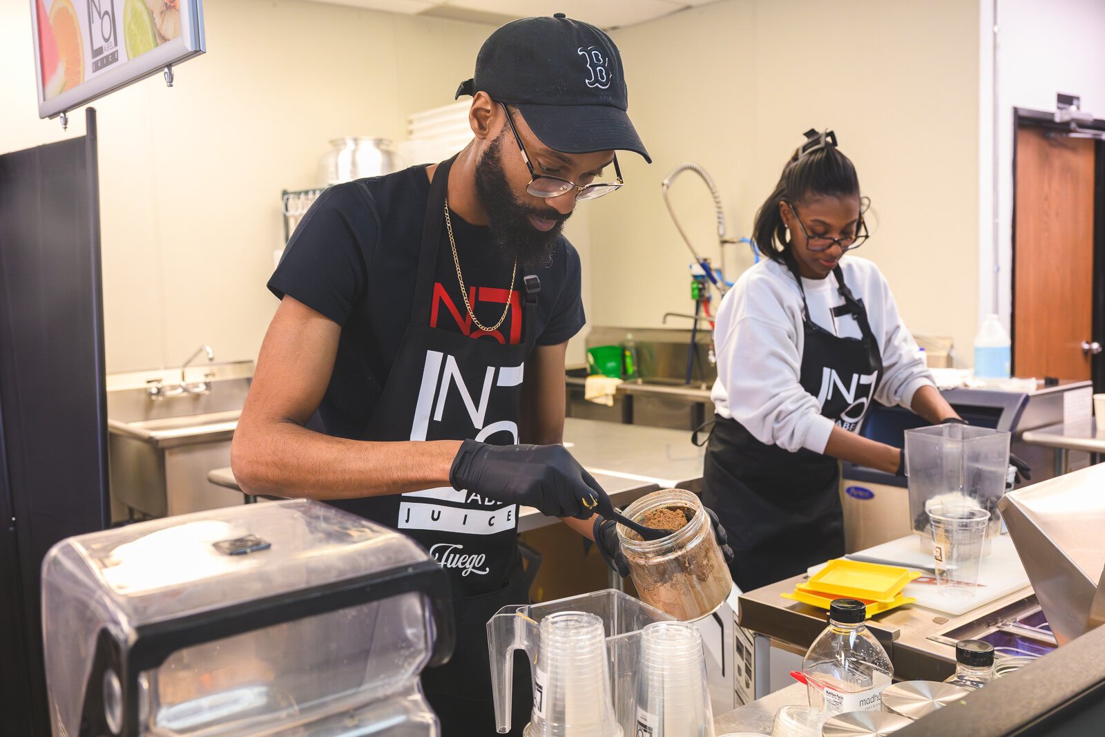 Cameron and Autumn Meadows getting smoothies at No Label Juice.
