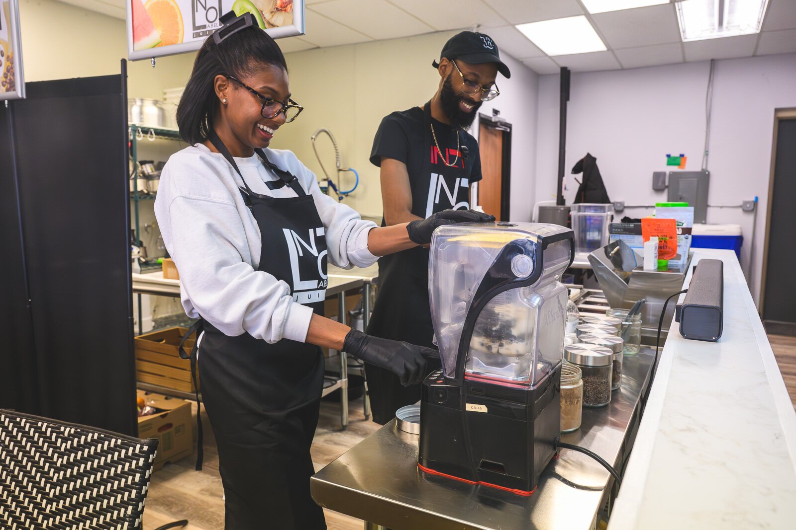 Nashia and Brandon Frye at No Label Juice’s Washtenaw Avenue location.