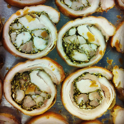 On off nights at home, there’s either roast chicken or pasta with rojo – homemade tomato sauce. The term “rojo” was coined by the workers for whom he cooked at D’Amato’s.