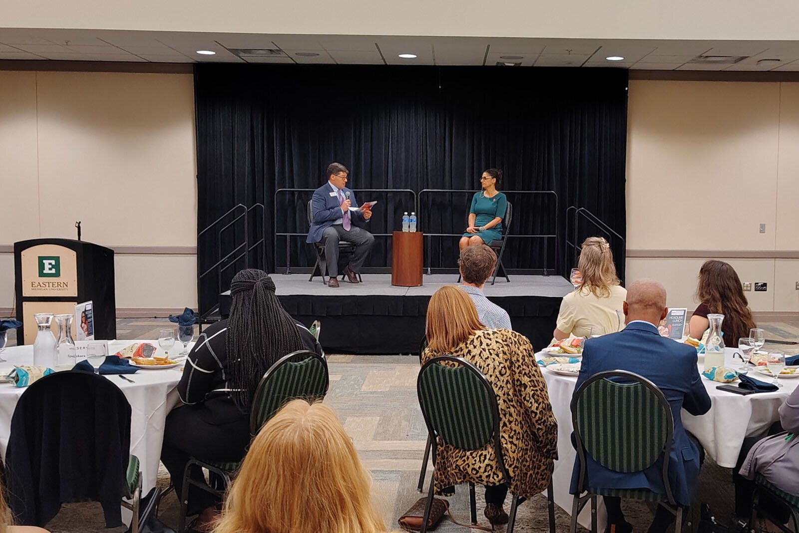 Dr. Mona Hanna, a nationally recognized leader in mother and newborn health and the founder of Rx Kids, spoke at EMU’s Student Center ballroom in an event co-sponsored by the A2Y Chamber and the Ann Arbor Area Community Foundation.