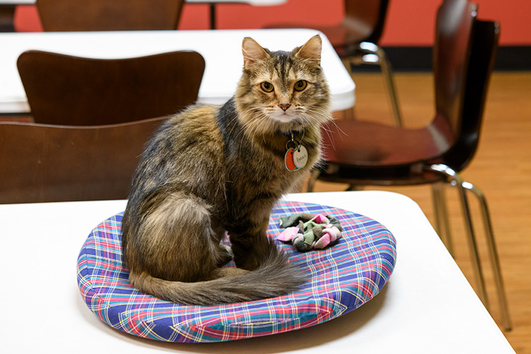 “There have been lots of studies that have been done recently specifically on the effects that cats have on our health,” she says. “It’s been shown that their purrs reduce our heart rate and that just being around them makes us happier.”