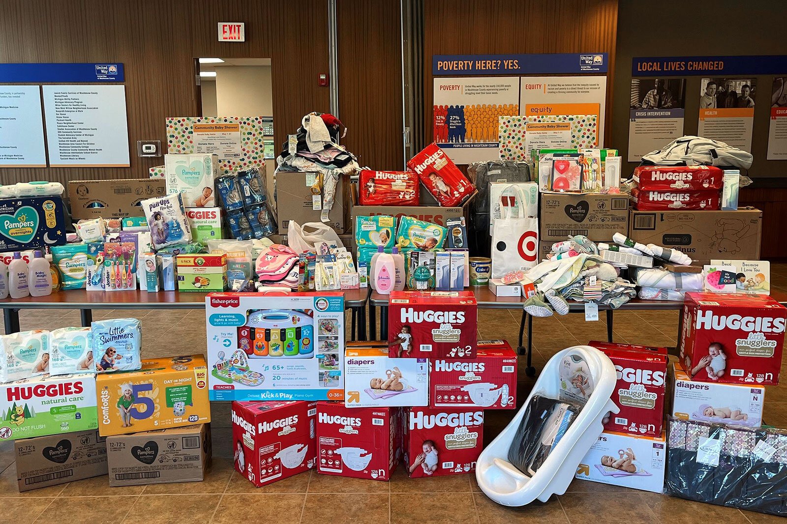 Many of the items in the baby pantries are provided by donations as well as grants, but the pantries also have expanded into an annual event: a community baby shower sponsored by the United Way of Washtenaw County.