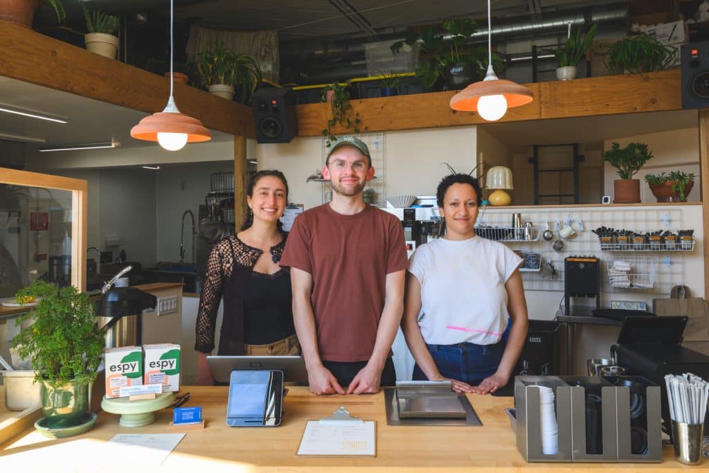 Espy Café staffers Rach Sajdak, Peter Littlejohn, and Amanda Bonilla Taylor. Doug Coombe