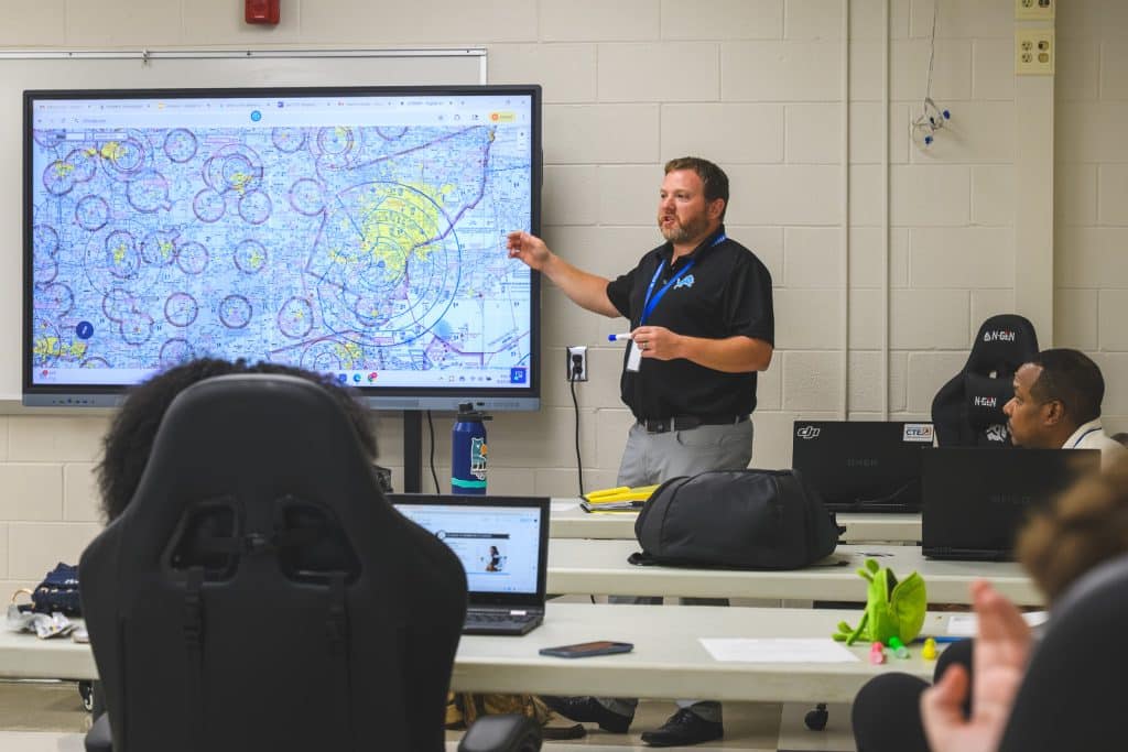 Michael Cushman, lead instructor in the pilot program, sees his job as a “perfect” fit given his background in both education and aviation. When he graduated high school 25 years ago, he went to Western Michigan University’s flight college, with dreams of becoming an airline pilot.