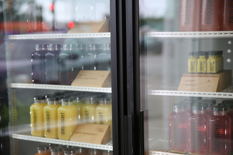 James says DROUGHT is currently in the process of building out a 15,000-square-foot production facility in Berkley, which will allow the company to expand both its retail operations and its wholesale market. About 30 markets around the Midwest carry DROUGHT juices, but James says the company will be able to expand into many more markets when the production facility remodel is done.