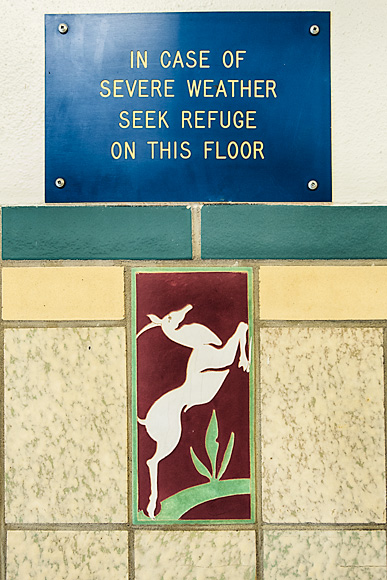 Groundbreaking for its time, Roosevelt came to observe the EMU program, which included a laboratory in which teachers learned techniques for educating special needs students. Though she was there for the program, the first lady undoubtedly noticed the 1939 building’s art deco beauty, complete with marble detailing and colorful Franklin Tiles decorated with wildlife.