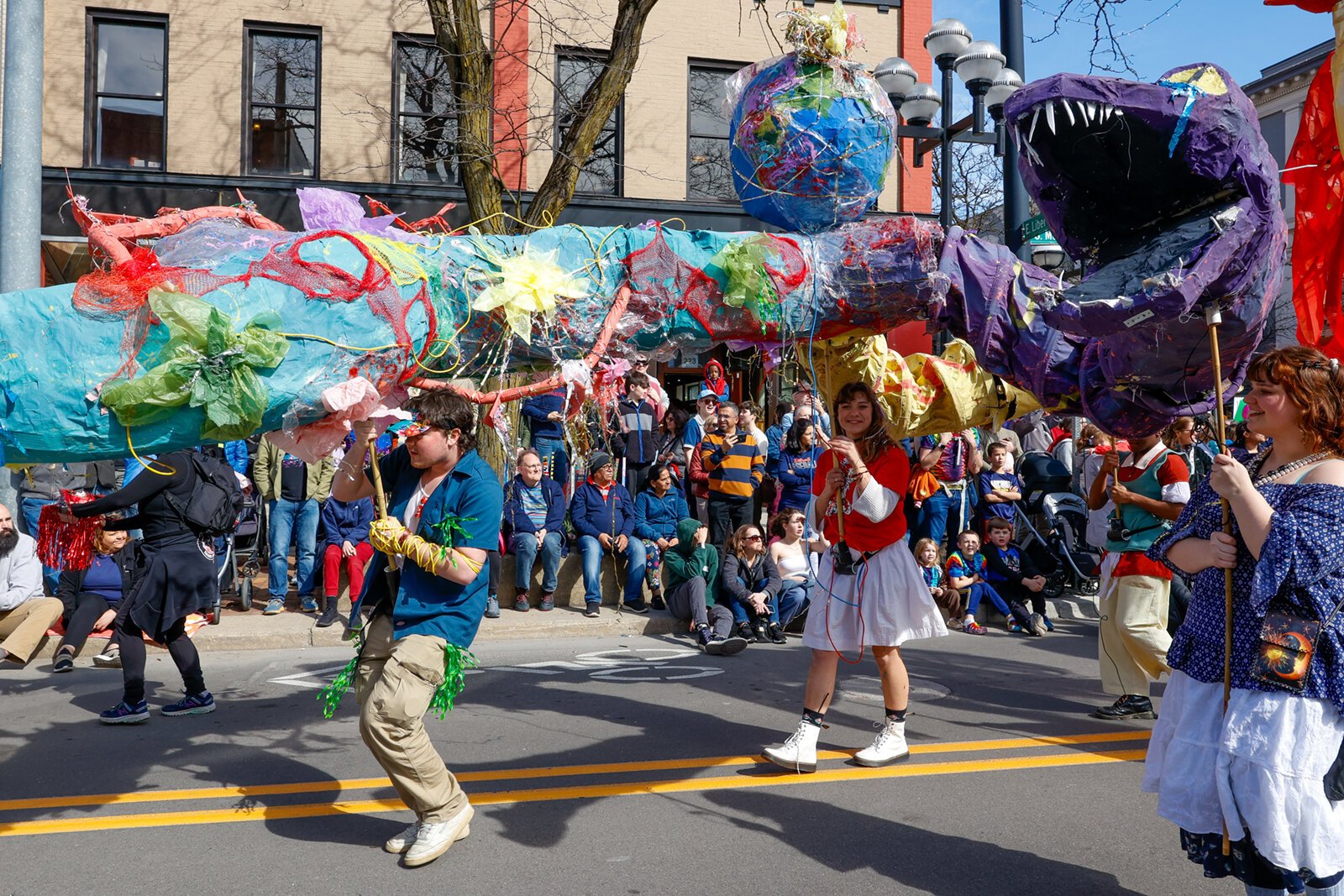 The University of Michigan’s University Musical Society (UMS) will cap its April residency at the Ypsilanti Freighthouse with a joyful, puppet-filled processional through Ypsilanti on April 19. The processional is a collaboration with Ypsi’s Riverside Arts Center (RAC) and the team behind Ann Arbor’s FestiFools
