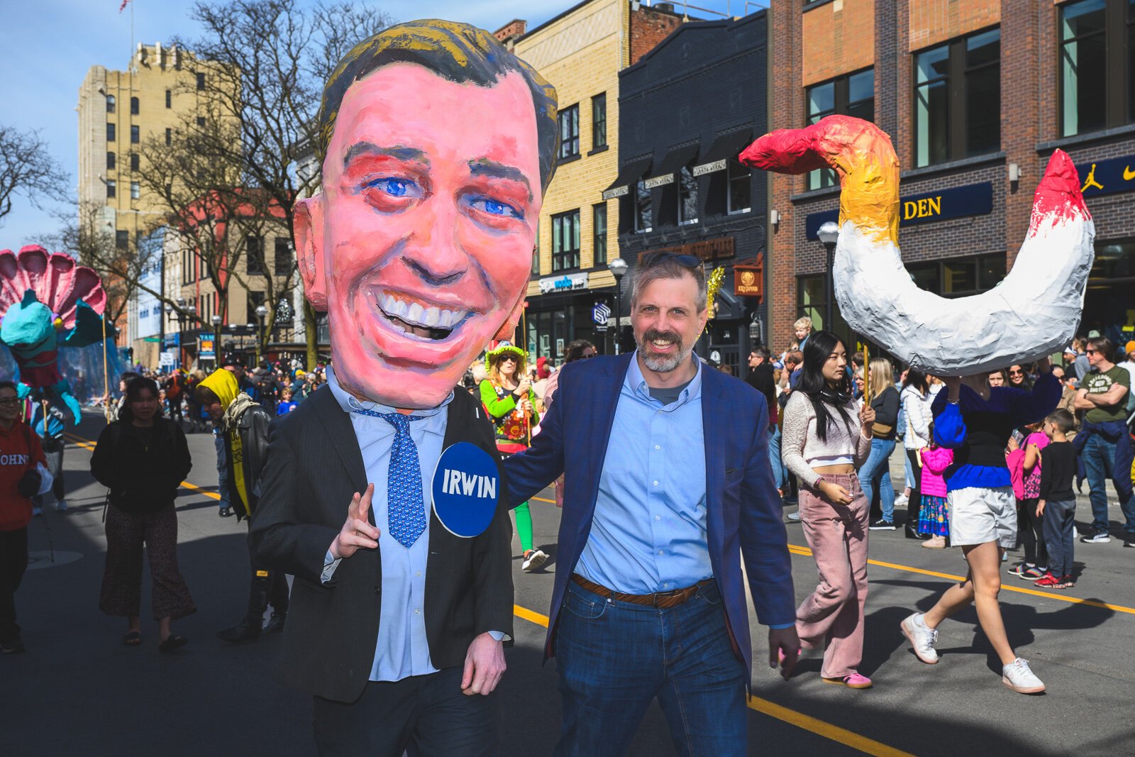 FestiFools came back with a bang this year, with Ann Arbor and surrounding communities coming out in full force for the beloved puppet parade after it briefly went on hiatus in 2023. Many attendees (including University of Michigan (U-M) students in FestiFools founder Mark Tucker’s class) created large papier-mâché puppets before parading their creations up and down Ann Arbor’s Main Street on Sunday, April 7. The event also featured a DJ, bubble-blowing, and other forms of tomfoolery.