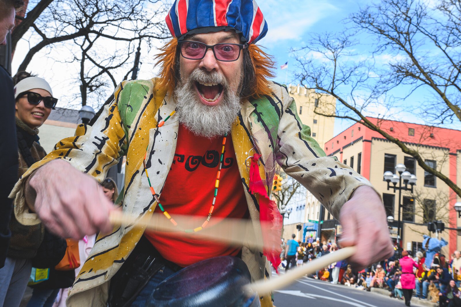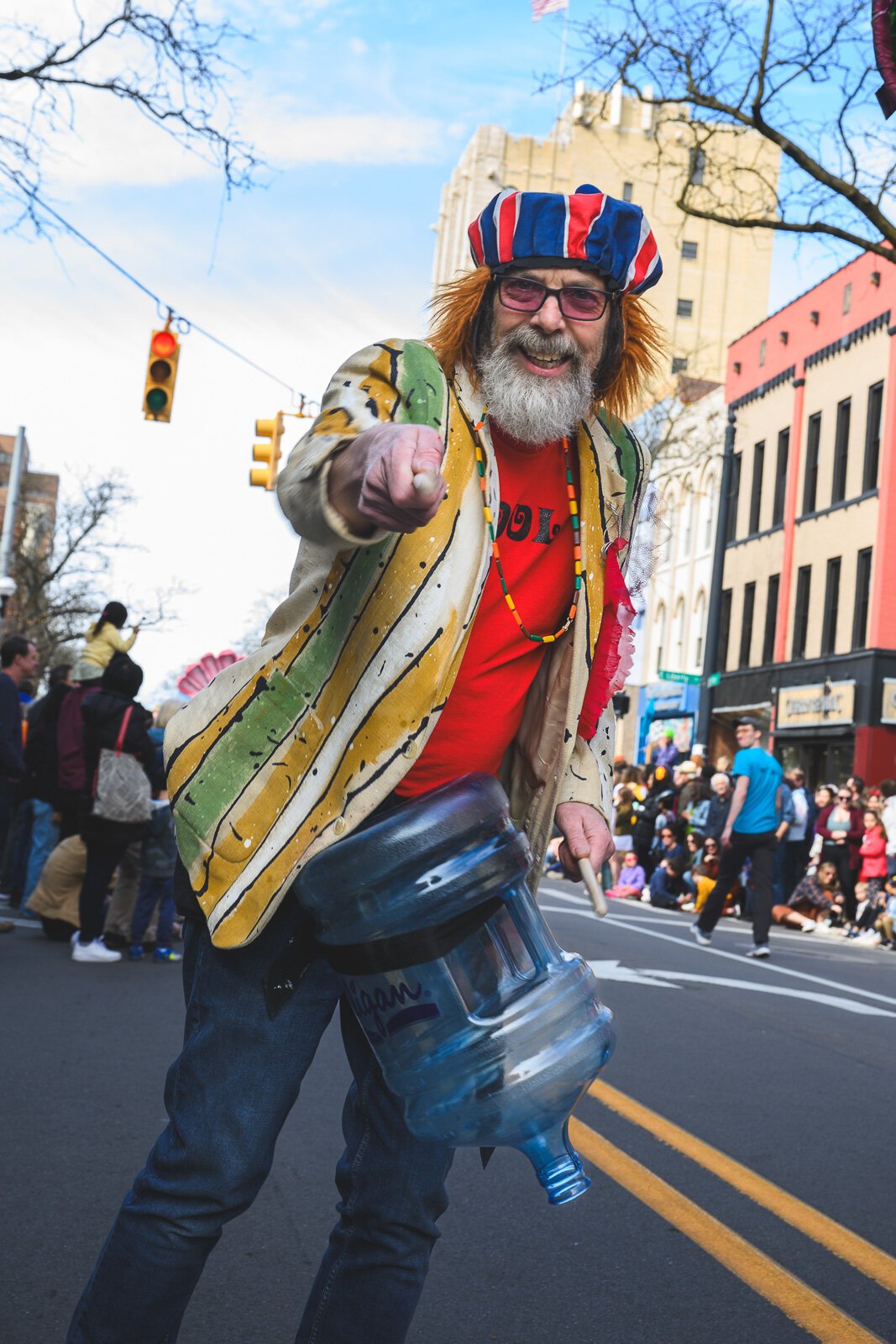 For the past 16 years, Tomasello has been getting together to play music with the monthly meet-up group Tree Town Ukes, who joined her for FestiFools. She said she’s “so happy the parade is back.” “I love how unorganized and chaotic it is and how it makes everyone happy!” she says.
