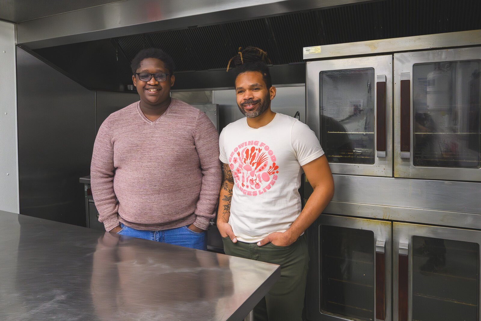Deante Bland and Julius Buzzard at Growing Hope’s incubator kitchen.