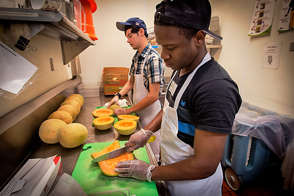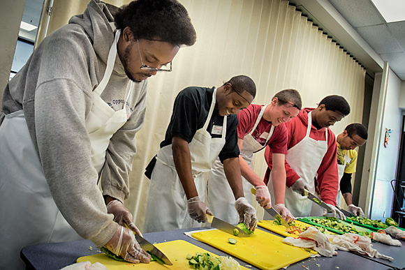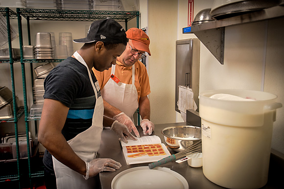 “Our primary goal is to get food into the hands of people who need it,” Schlitt says. “The job training program was a way to work at some of the root causes of hunger and poverty, to help people get employed, to work on some community service building, and also giving individuals tools to move forward in finding employment. A lot of our students may not even go into food service, but the kind of environment that we create is like a job experience, so it prepares them for having a full-time job.”