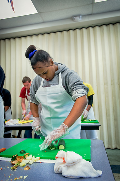 The program began as a pilot in 2005, two years after Food Gatherers opened the Community Kitchen. There have been two sessions every year since, one in spring and one in summer, with over 120 students graduating since the program’s inception. Most students are referred to Food Gatherers through partner organizations in the Washtenaw Housing Authority, primarily the youth shelter Ozone House. Boasting an 87 percent graduation rate, the program’s students generally aren’t lacking for commitment or enthusiasm.
