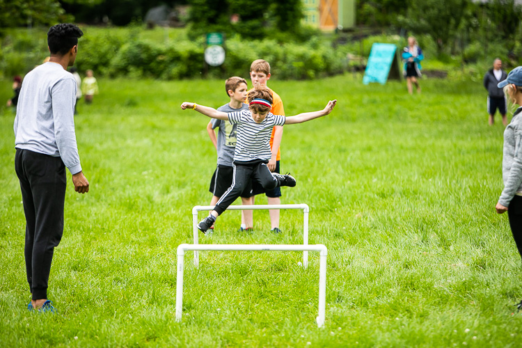 Nix and Mackenzie have also introduced the kids to the sport of shot put. To keep costs down, most of the equipment is homemade, with hurdles made from PVC piping and starting blocks made from two-by-fours.