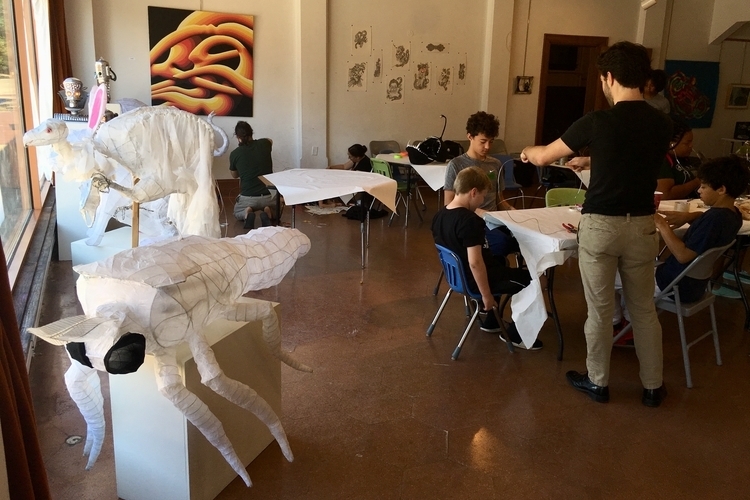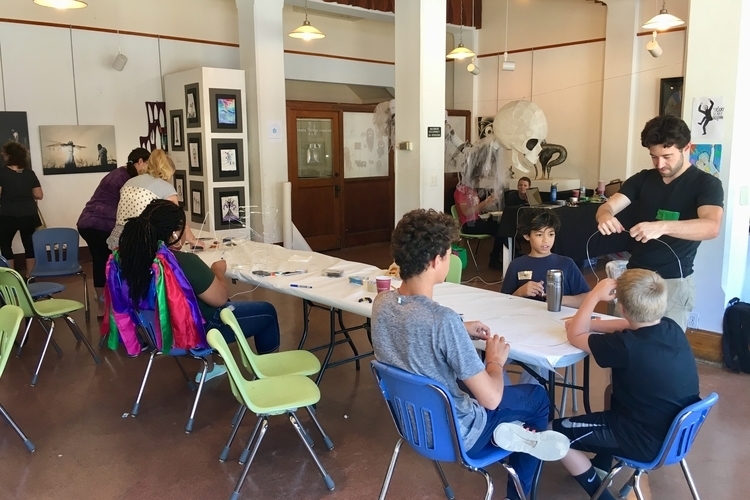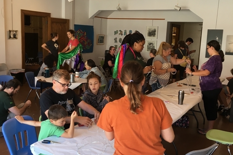 WonderFool Productions facilitates satellite workshops for specific organizations, like the Ypsilanti District Library and Ypsilanti High School, that are playing particularly active roles in ypsiGLOW. Members of the participating organizations come together at the satellite workshops to work on a cohesive project.