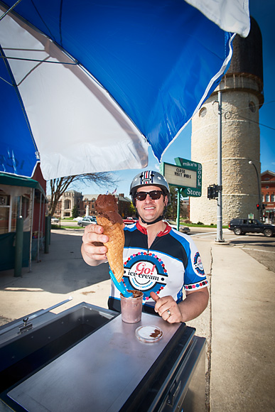 To paraphrase David Lee Roth: "He's your Ice Cream Man, stop him when he's passin' by." …Or pedaling by, as the case may be. Rob Hess is the bicycle-bound peddler (and pedaler) of Go! Ice Cream, the latest addition to Ann Arbor-Ypsi's army of hand-crafted, small-batch food artisans. We, for one, welcome their invading forces.