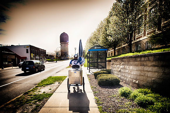 Doug Coombe – Rob Hess heading out for Depot Town on his ice cream bike