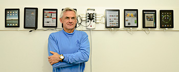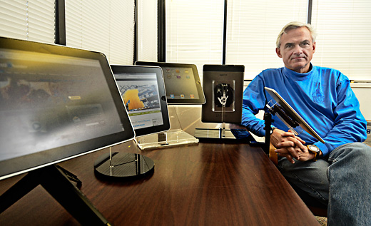 The possibilities go on and on, says Burns, who came up with the idea about seven months ago, when he saw first hand how difficult it was to balance and use an iPad. The Handeholder is just the latest in a long list of Burns’ how-can-we-improve-life inventions. The owner of Burns Computer Services in Ann Arbor, his company is known for the technological innovations it’s brought to the world of running, specifically in timing and providing race results.
