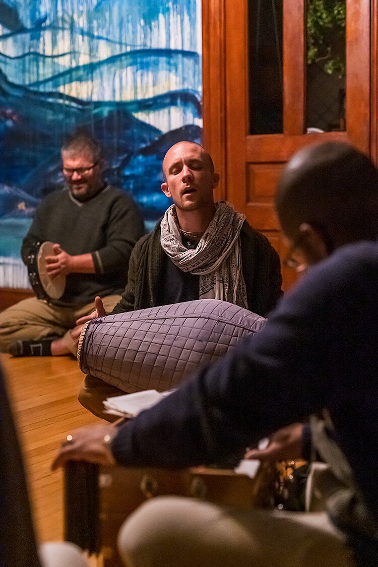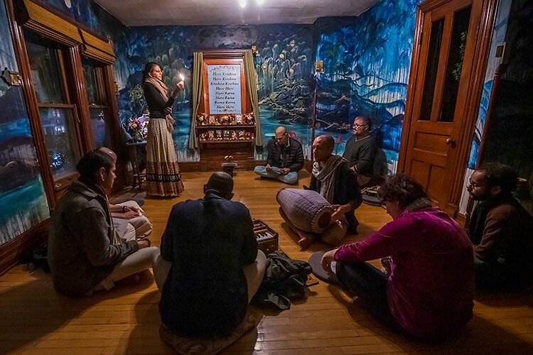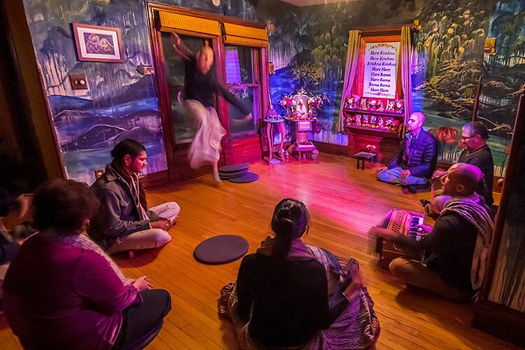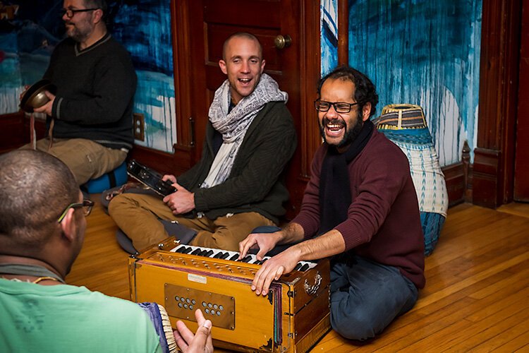Today, the Harmony Collective’s community center offers a weekly scripture reading and philosophical discussion on Wednesday nights, kirtan on Thursday nights, and vegetarian and vegan meals on Wednesday and Thursday nights and at lunchtime on Sundays.