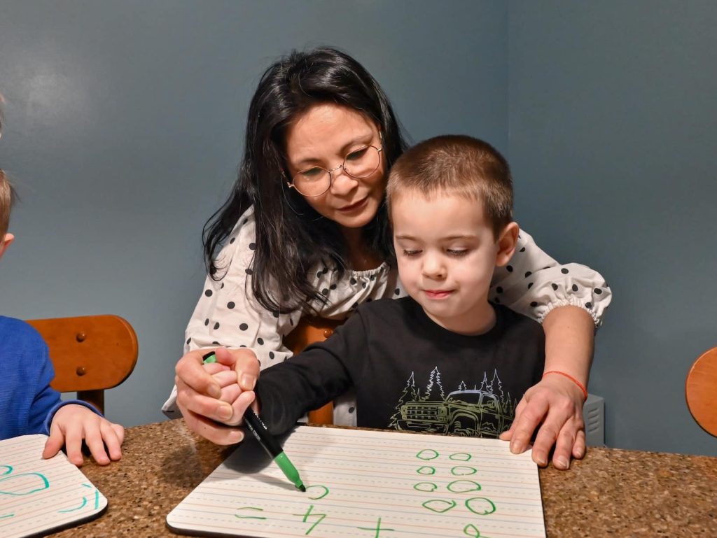 On any afternoon in Kalamazoo, the sounds of early learning fill Trinh Bolliet’s home-based learning center, Adorable Bebes Day Care. A small group of children gather for a lesson, switching easily between English and French. In another room, younger children build with blocks while an older child practices writing at the table.
