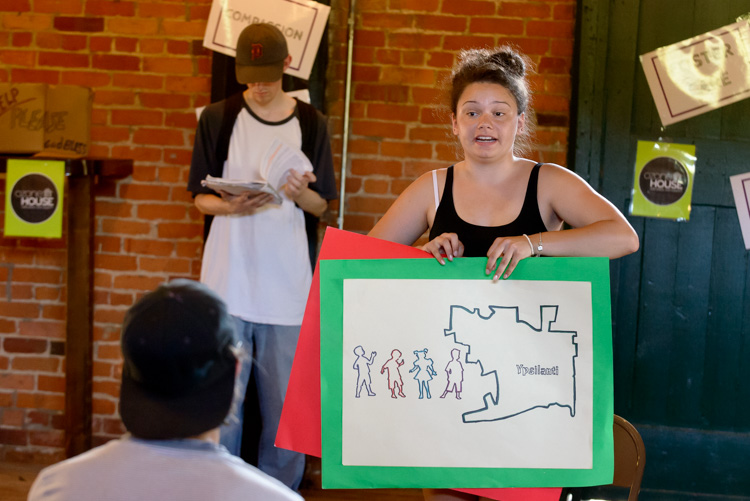 On a hot afternoon in late September, young people who have been helped by Ann Arbor nonprofit Ozone House dramatized the realities of being young and homeless, from wondering where to find toilet paper while living on the streets to the heartbreak of being bullied at school.