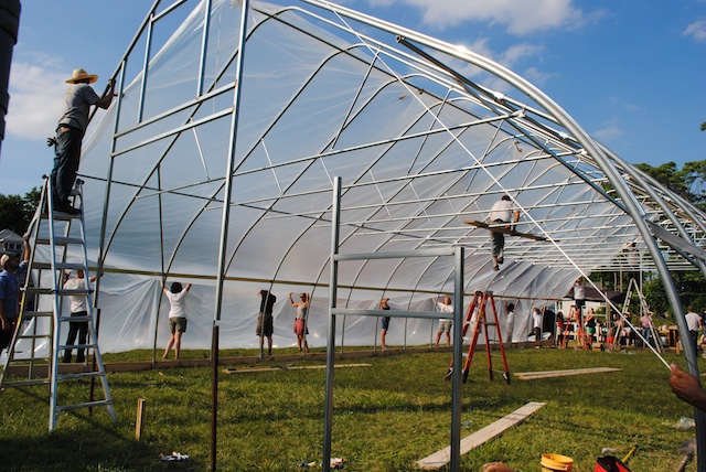 Call it the 21st century version of the barn-raising, where volunteer groups of 15-30 strong are convening to put up a hoop house a day. In the latest campaign by hoop house champion and local-food breakfast salon Selma Cafe, 15 of the structures were newly built in the 20 days between June 15 and Independence Day. Their locations include Sunseed Farm and the Tilian Farm Development Center, a new business incubator for farmers situated on a 150-acre plot in Ann Arbor Township.
